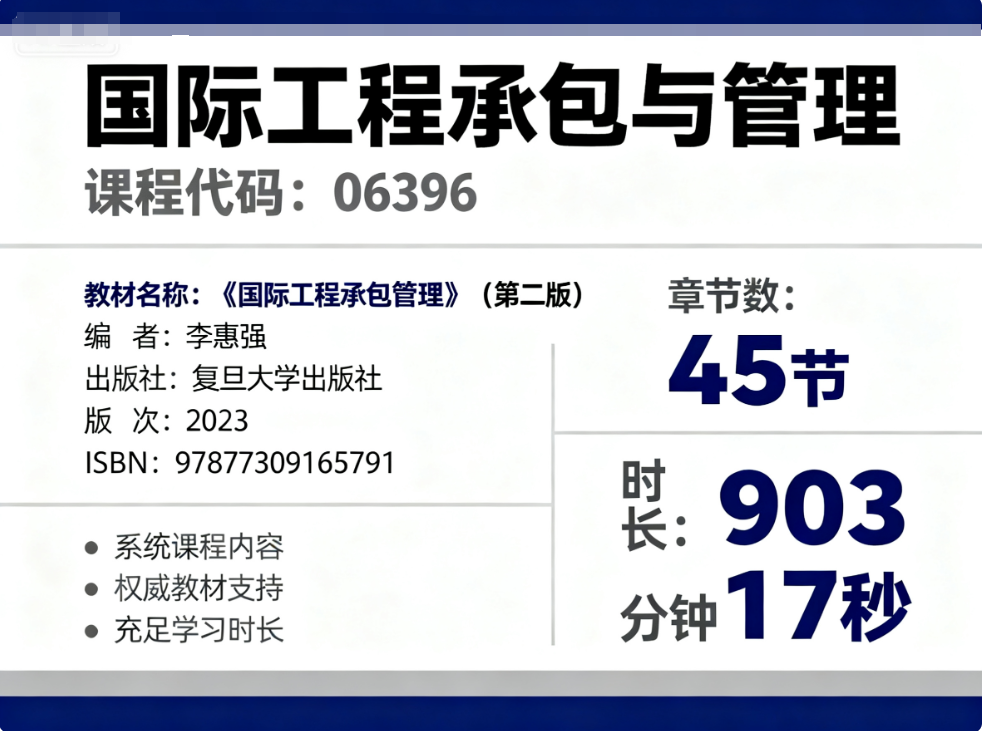 2026年全国自考《国际工程承包与管理(课程代码:06396)》课程精讲